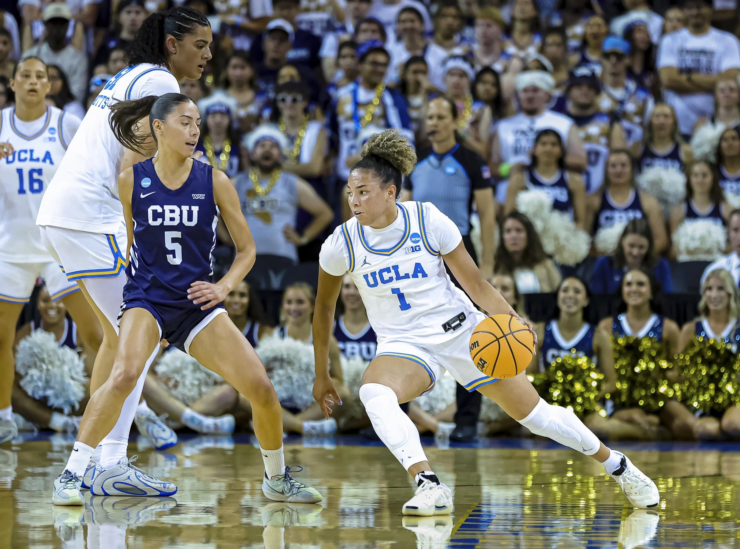 WESTWOOD, CA -After a slow start and only leading by ten points at halftime, 44-34, the #1 seed UCLA Bruins (32-1) came out in the second half and clamped down on defense, allowing just nine points in the second half, and routed the #16 seed California Baptist Lancers (23-11) in the first round of the NCAA Tournament at Pauley Pavilion 96-43.