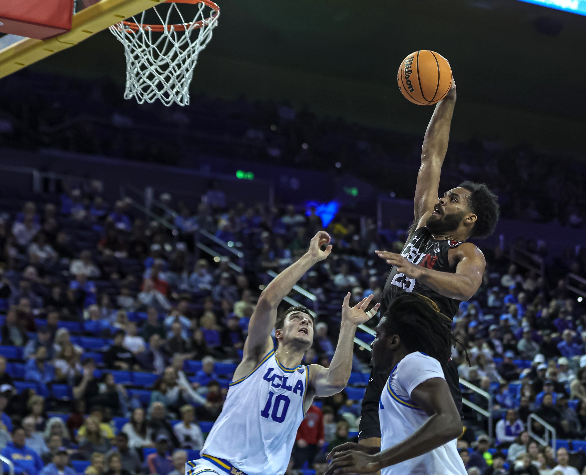 In the final minute 6-foot-9 Bryan Ndjonga hit a nimble stutter-step that left his defender floored as he drained a jumper that brought oohs and ahhs from the Bruin crowd. It was the freshman forward's only basket of the half but it gave CSUN a 14-point lead, 40-26 entering halftime.