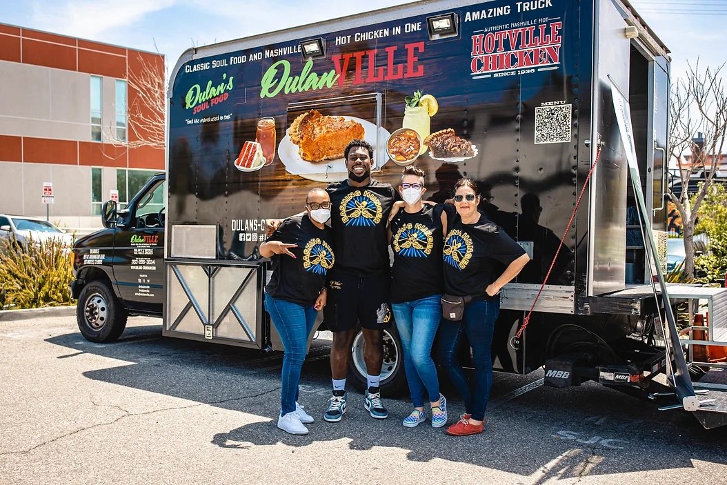 Los Angeles Rams Sebastian Joseph-Day and staff from the DulanVille Food Truck. Photo by the Los Angeles Rams.