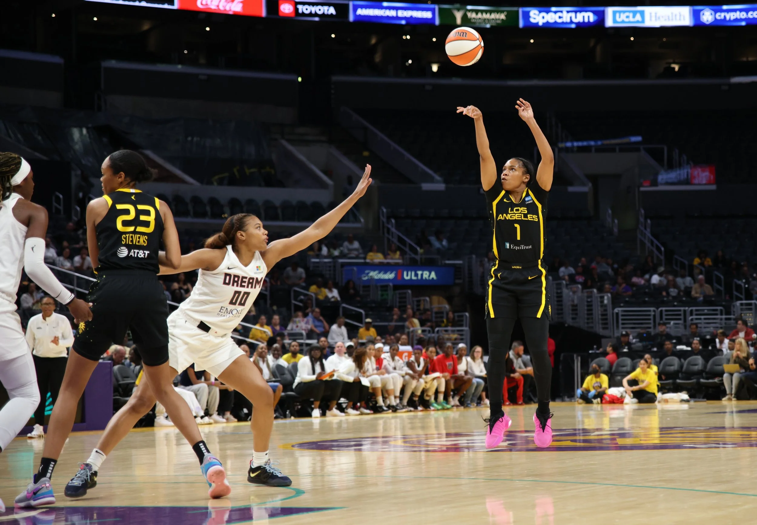 Atlanta led 31-16 with a layup by Haley Jones in the second quarter. Jordin Canada's jump shot had Los Angeles trailing 35-20.