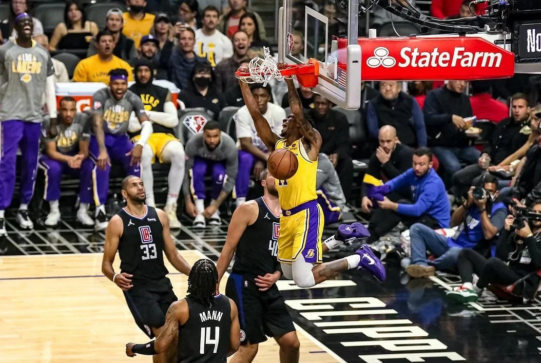Los Angeles Lakers #11 Malik Monk monster two-handed dunk in the first quarter against the Los Angeles Clippers. Photo by Jerry Kelly/T.G.Sportstv1.