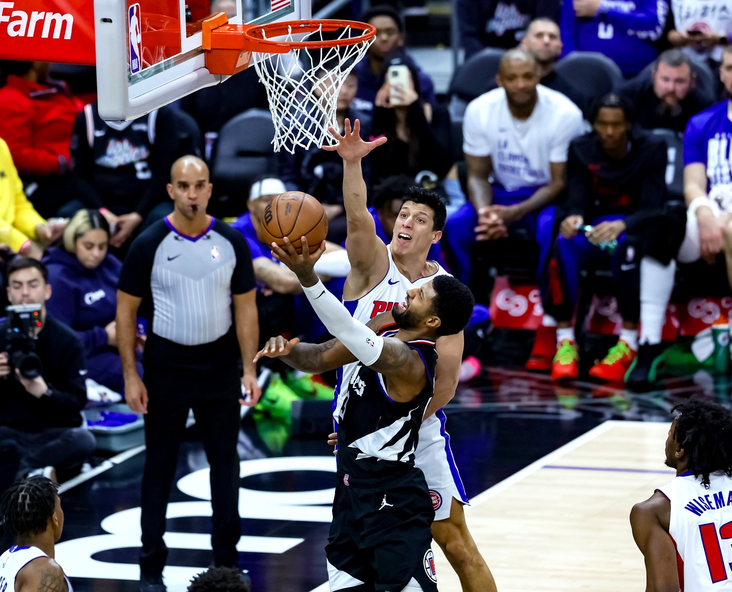LOS ANGELES, CA – Paul George scored 33 points, Kawhi Leonard added 24, and the Los Angeles Clippers who were outrebounded 57-35, rallied in the fourth quarter to defeat the Detroit Pistons 112-106 at Crypto.com Arena.