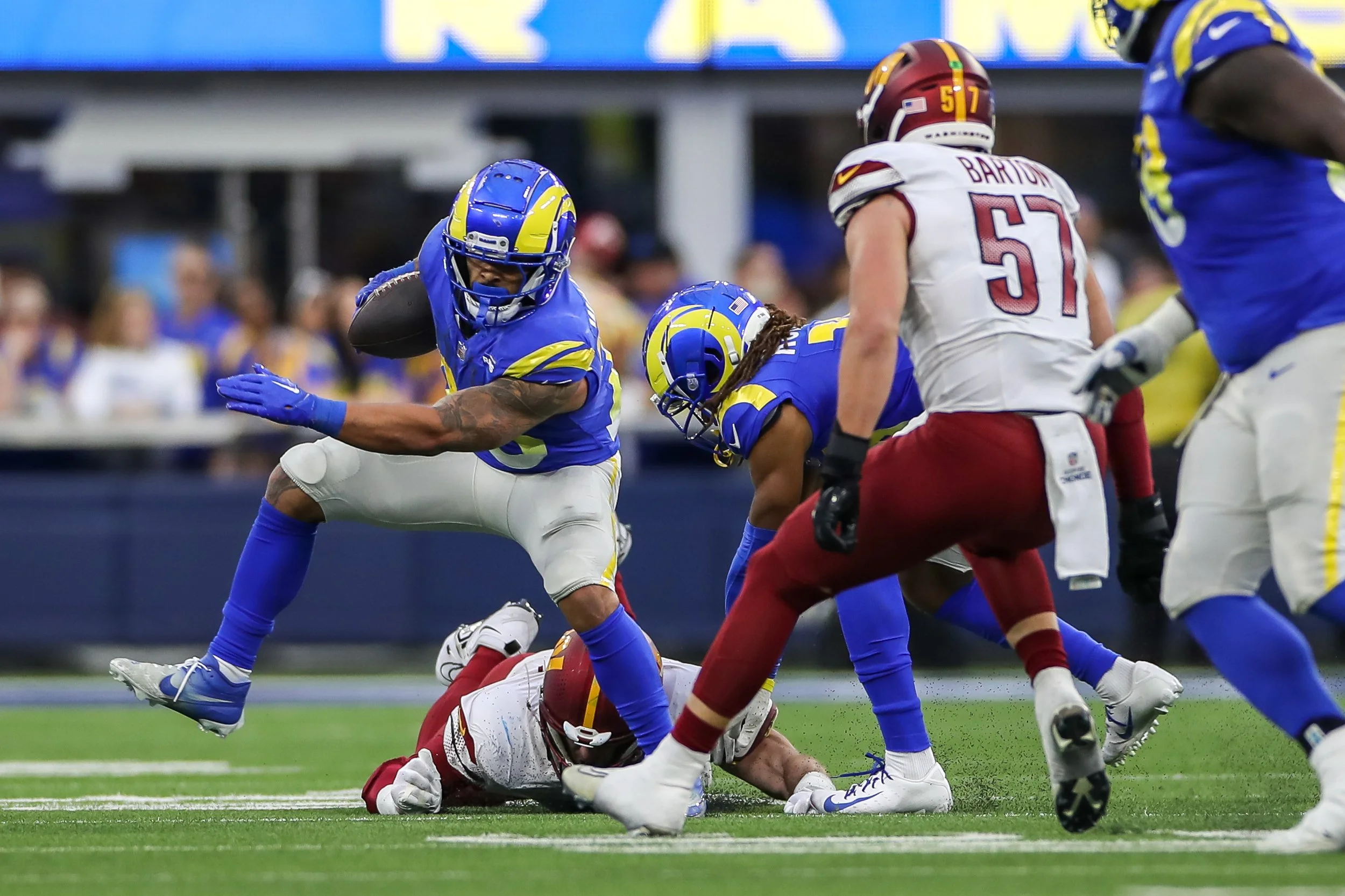 Los Angeles Rams #23 Kyren Williams (RB) ran for 152 yards and one touchdown against the Washington Commanders. Photo by Jevone Moore.