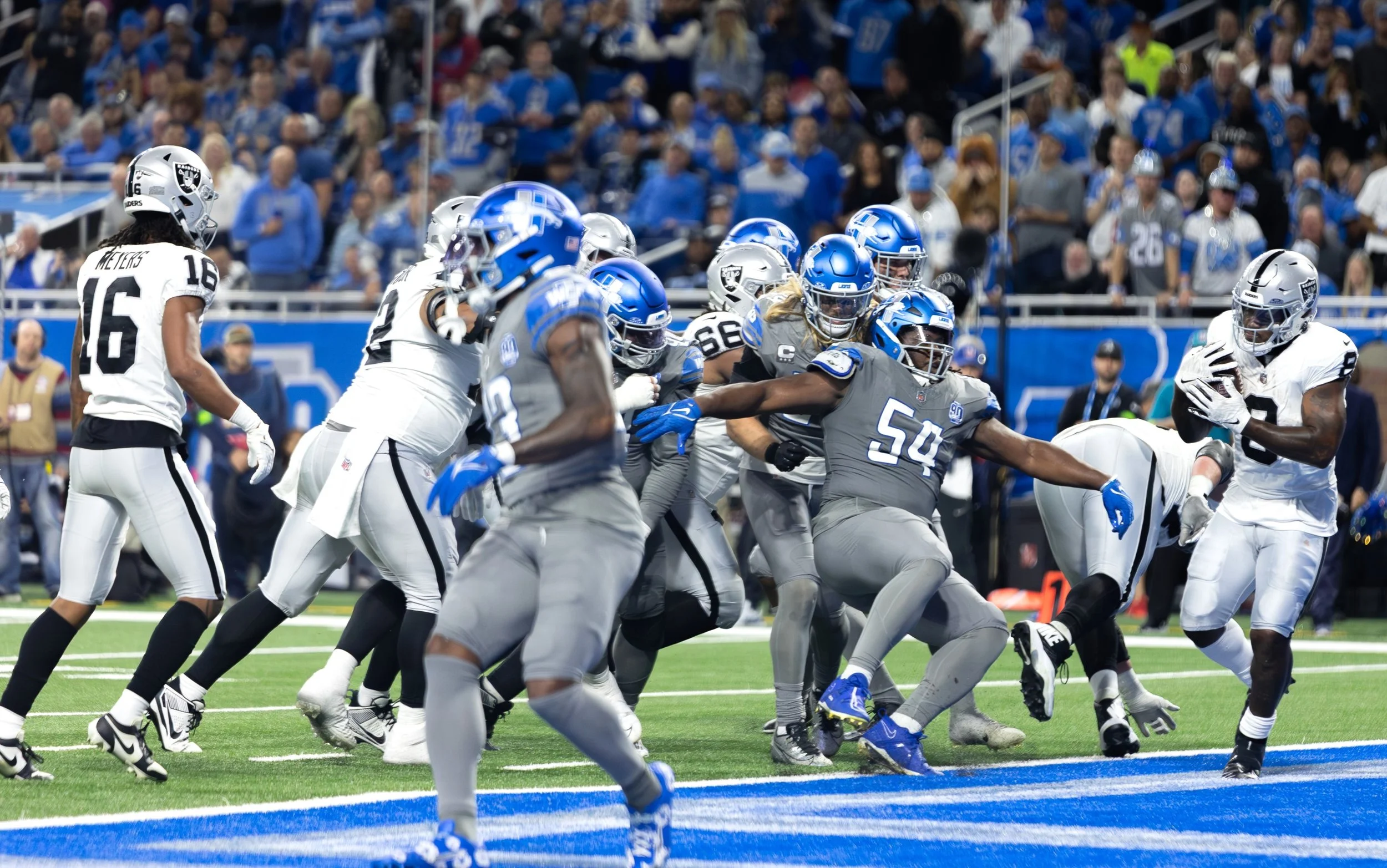 DETROIT - In a prime-time Monday night showdown, the Las Vegas Raiders (3-5) offense was non-existent, resulting in a disappointing 26-14 loss to the Detroit Lions (6-2).