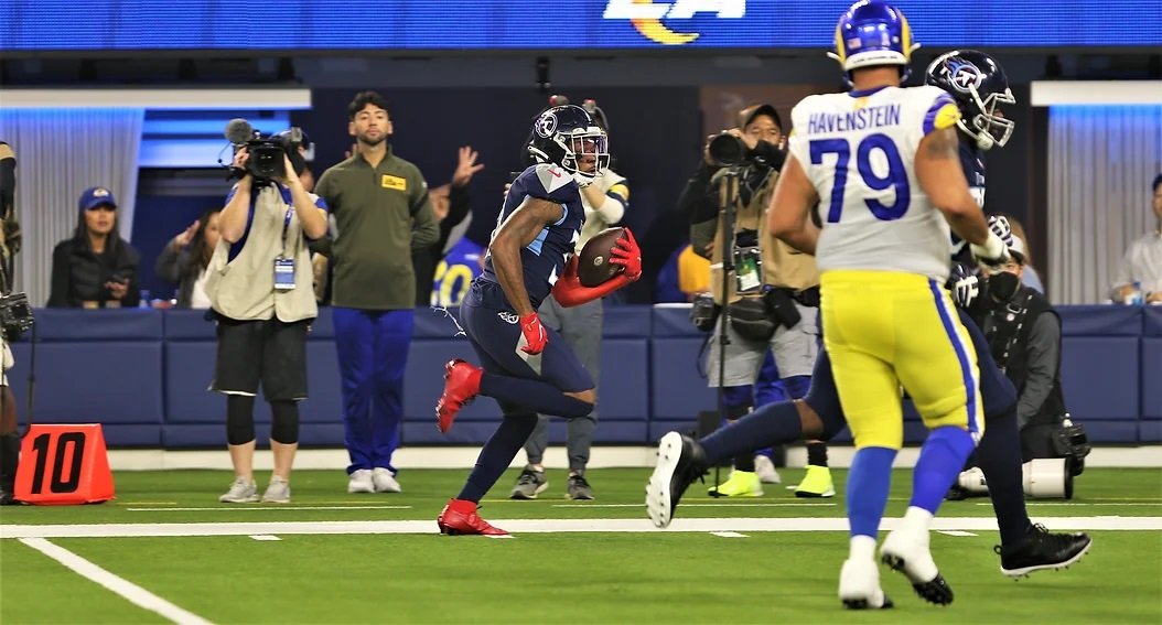 11/7/21 INGLEWOOD, CA -The Los Angeles Rams, with a record of 7-1, hosted the Tennessee Titans 6-2, and lost 28-16 on Sunday Night Football, with Matthew Stafford not having a good game at SoFi Stadium.