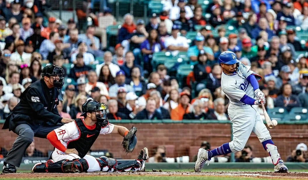 Los Angeles Dodgers #50 Mookie Betts solo home run in the top of the sixth inning at Oracle Park Stadium. Photo by Jerry Kelly/TGSportstv1.