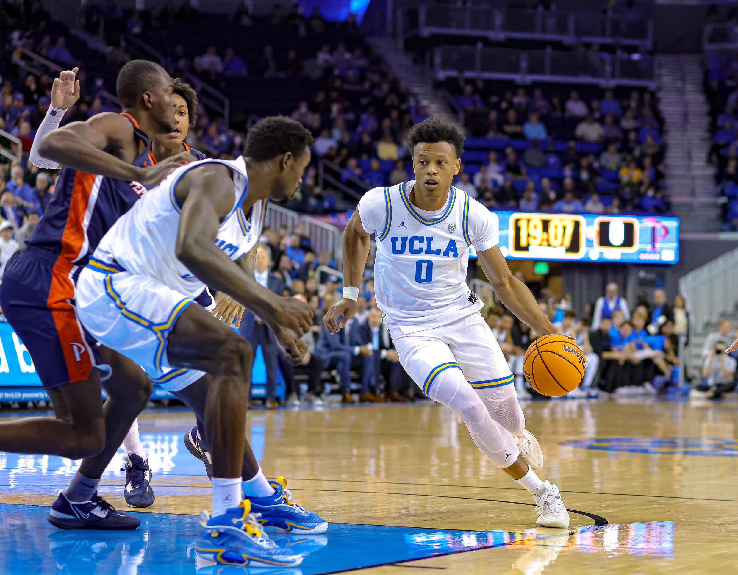 UCLA Bruins #5 Amari Bailey scored a career-high 19 points against the Pepperdine Waves. Photo by Jerry Kelly/TGSportstv1.