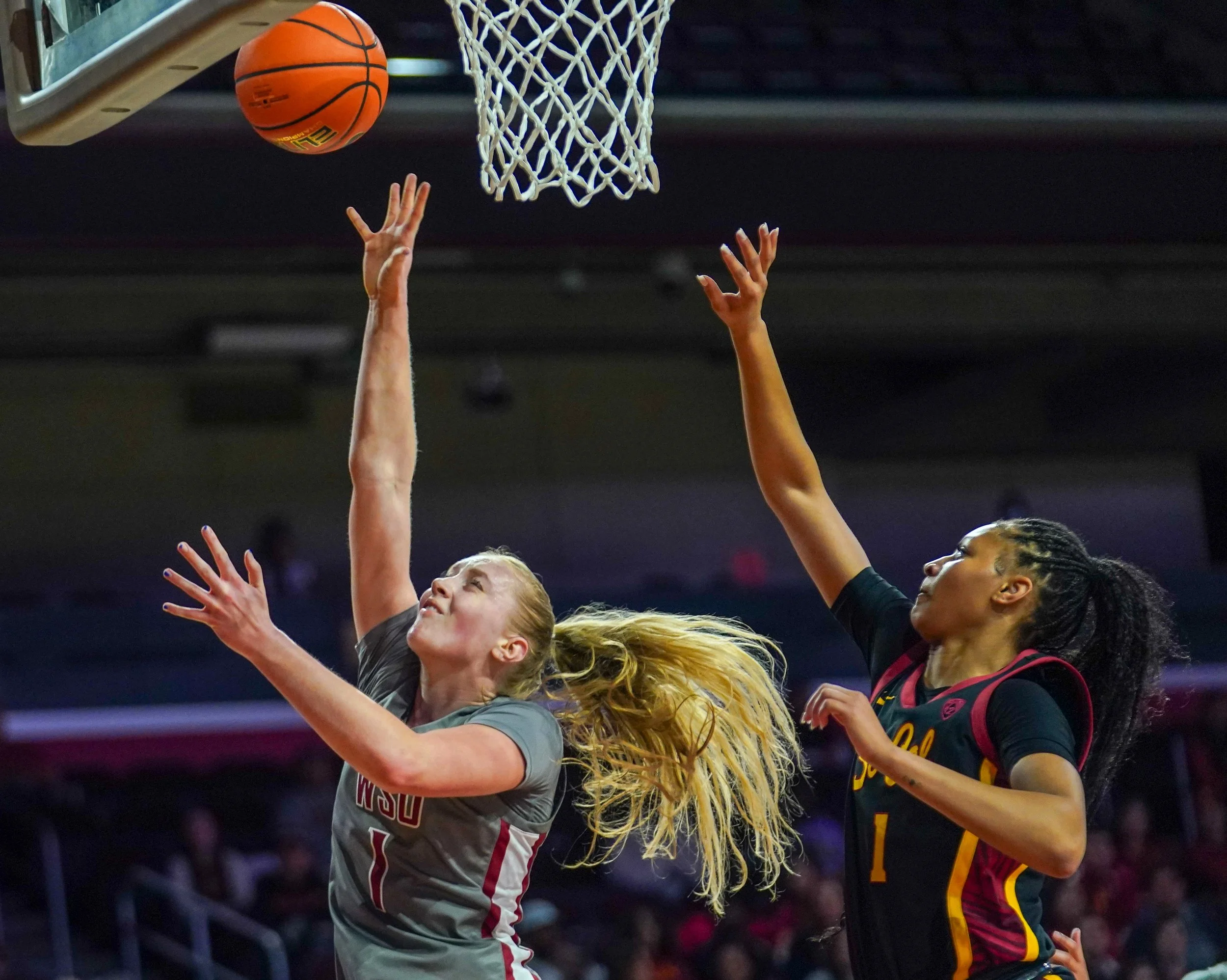 The freshman standout would continue to dominate Washington State with a 21-point first half, largely from her golden ability to lead the team in transition. The Trojans recorded 20 points off fast breaks through all four quarters, compared to three for the Cougars.